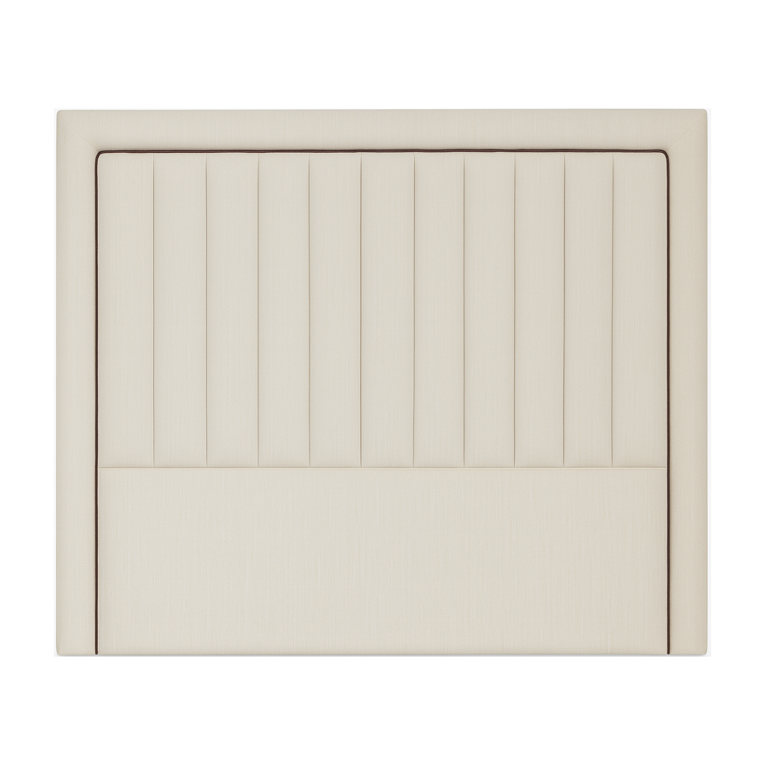 Elegant and timeless, the Margot Headboard is a refined statement piece for any sophisticated bedroom. Featuring vertical channelling across the upper panel, this design is expertly upholstered in a soft, off-white fabric that enhances its luxurious simplicity. The inset border—accented with subtle piping—adds a tailored edge and architectural depth, while the generously padded surround offers both comfort and visual balance.