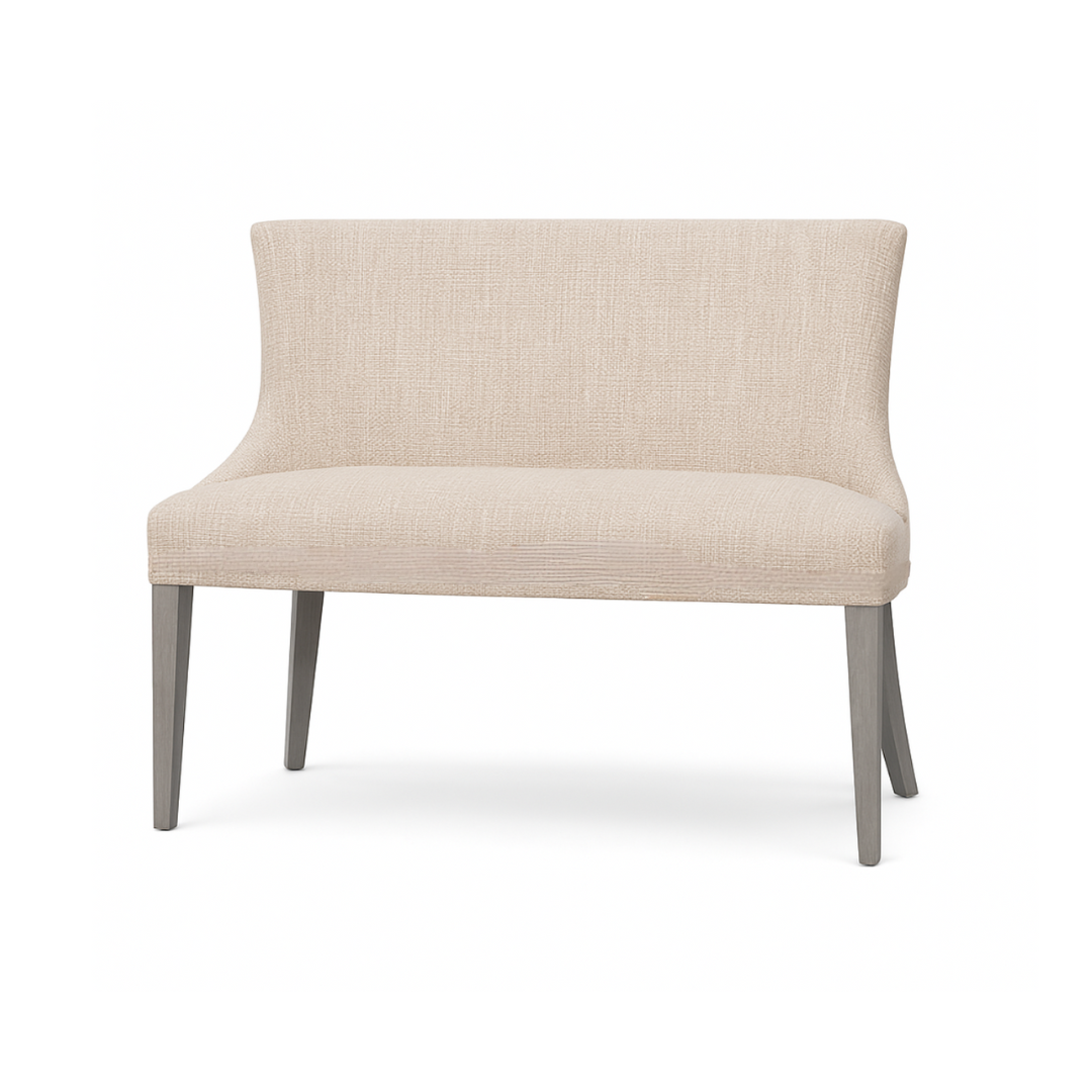 This elegant bench features upholstery with clean lines and slim black tapered legs for a refined, modern look. Its structured back and low arms create a sleek, tailored silhouette that blends effortlessly into sophisticated interiors.